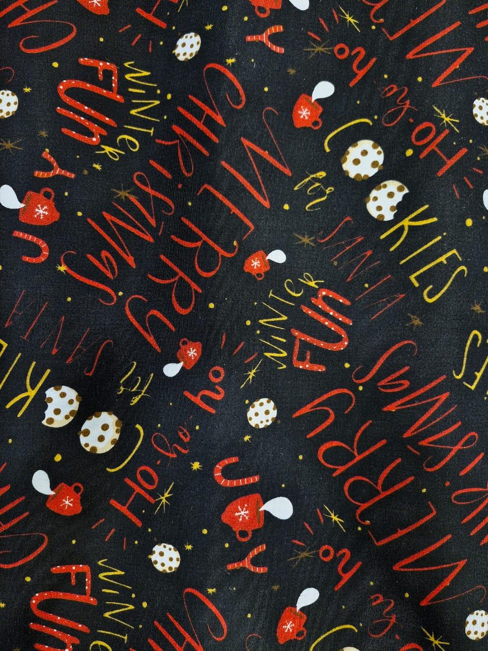 MICROFIBRA PESADA ESTAMPADA NAVIDEÑA FONDO NEGRO