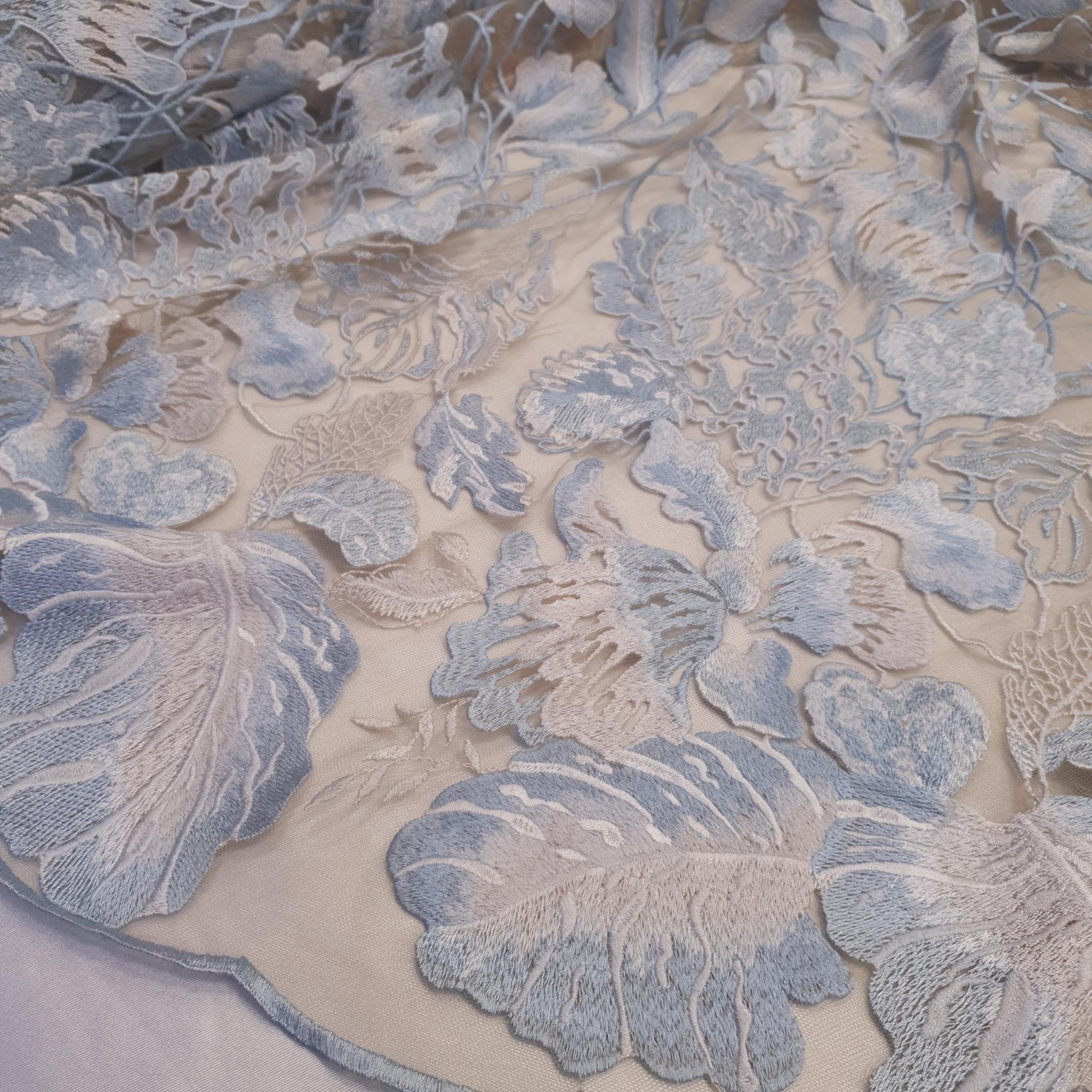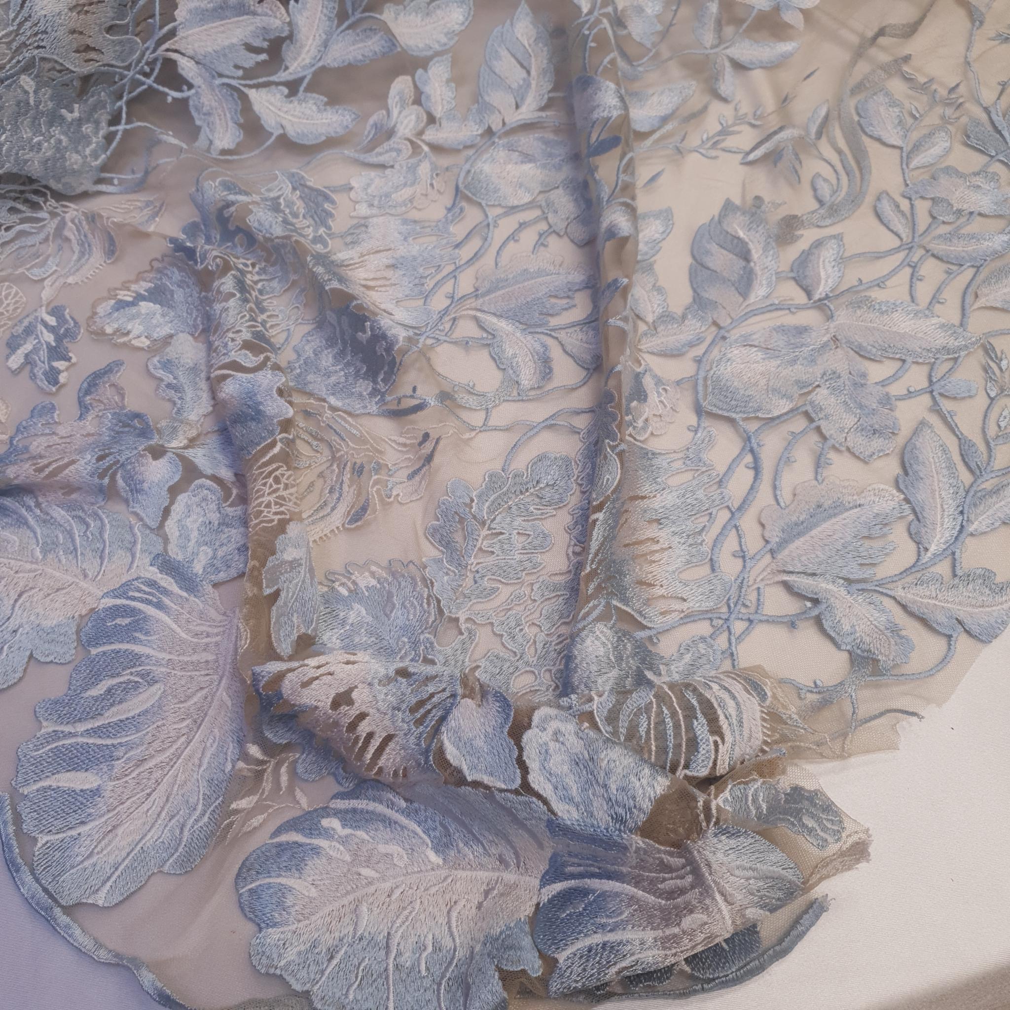 TUL BORDADO CELESTE Y BLANCO